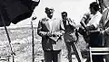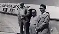 Ja'akov Hozman (vlevo) a tehdejší ministr dopravy David Remez (vpravo) u letadla společnosti Arkia -