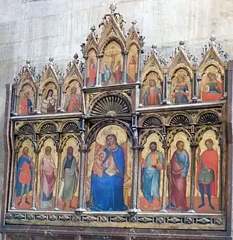 - Trůnící madona s dítětem mezi 14 svatými (1385), polyptych z kostela Santarcangelo di Romagna, nyní v: Museo Civico v Palazzo Cenci v Santarcangelo[3]