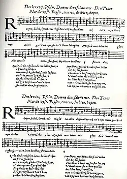 - 159 Souterliedekens, tj. zhudebnění žalmů v nizozemštině, jež jako cantus firmus využívají melodie populárních písní.[2]