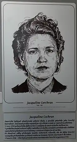 - ↑ ŠUDOMA, Marek. Jacqueline Cochranová – Neprávem opomíjená rekordmanka [online]. Aeroweb, 2016-05-11 [cit. 2020-01-28]. Dostupné online.