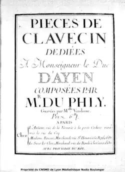 - Pièces de clavecin dédiées à Monseigneur le duc d'Ayen (1744)