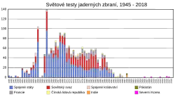 První jaderný test (zařízení Trinity) provedly Spojené státy americké v roce 1945 v Novém Mexiku. Od té doby bylo provedeno ve světě přes 2000 jaderných testů, z nichž většinu provedly USA (přibližně 1000) a bývalý Sovětský svaz (přibližně 700). Roku 1961 byla odpálena největší Car-bomba. Mezinárodní smlouvou z roku 1963 byly jiné než podzemní jaderné testy zakázány. Od té doby následovaly jen rozsahem malé výbuchy.[1]