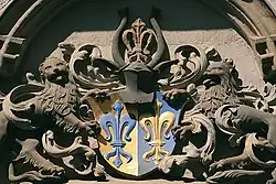 Rodina byla v roce 1473 obdařena erbem.[5] Zakoupením hrabství Kirchberg a panství Weißenhorn s městem Weißenhorn jakož i panství Wullenstetten a Pfafenhofen jižně od Ulmu získal v roce 1507 Jakob Fugger pro svou rodinu predikát z Lilie (von der Lilie), v roce 1511 dosáhl povýšení do šlechtického stavu. Povýšení obchodníka na svobodného pána nemělo v té době v říši obdoby.[6] V roce 1514 získali Fuggerové od císaře Maxmiliána I. titul říšského hraběte.[5]