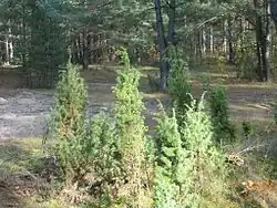 ![]() Jalovec obecný pravý (Juniperus communis var. communis) na Lüneburském vřesovišti | |