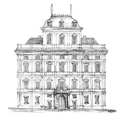 Kresba arcibiskupského paláce v podobě po Matheyově přestavbě
