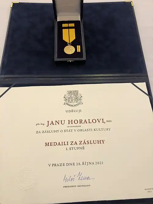 - ↑ KOPAL, Jiří. Státní vyznamenání pro Jana Horala. Noviny města Český Krumlov. Prosinec 2021, roč. 19, s. 4. Dostupné online.