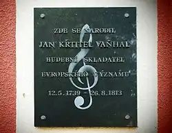 Na místě, kde stával Vaňhalův rodný dům byla odhalena v roce 1998 pamětní deska.