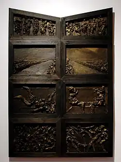 Z roku 2000 je rozměrná plastika Exodus, kde bílé a černé znaky na šedém podkladu násobí plastický dojem.