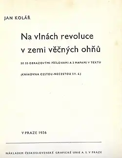 - ↑ KOLÁŘ, Jan. Na vlnách revoluce v zemi věčných ohňů (Předmluva). Praha: Československá, 1936. Kapitola Osoba autorova, s. 7–228.