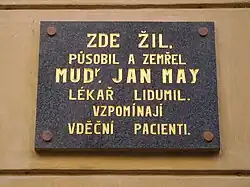 Ostravské působení obou manželů tragicky ukončila smrt jejich syna Ondřeje, který podlehl spále. Mayovi se proto ještě před koncem volebního období odstěhovali do Prahy. Zde se doktor May věnoval zejména léčbě plicních chorob, tuberkulózy a rakoviny. Zemřel v Praze roku 1931. O jeho oblibě svědčí např. pamětní deska v pražské Mikulandské ulici, kterou jeho potomci vytvořili, aby po něm zbyl alespoň nějaký odkaz. Také mu vytvořili kamenný pomníček v lázních Skalka na Čeladné či ostravská ulice Dr. Maye.