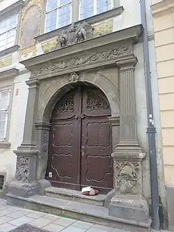 - ↑ a b KOVÁŘ, Jaromír. Plzeňské portály. Plzeň: Krajské nakladatelství v Plzni, 1958. 117 s. S. 38, 39.