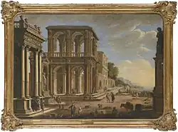 - ↑ Alessandro Salucci (Florence 1590-1655/60 Rome) and Jan Miel (Beveren-Waes 1599-1664 Turin), An architectural capriccio with an ionic portico, a fountain, a two story loggia, a Gothic palace and figures on a quay at Christie's