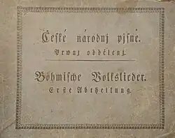 - České národnj pjsně – vydání českých národních písní v roce 1825. Písně byly vydány s notovým záznamem melodie a u českých písní zápisem textu v češtině. Věnování publikace hraběti Františku Antonínovi z Kolovrat bylo též v češtině. Dvoudílný sborník obsahuje 300 písní z Čech, z toho 50 německých. Na sbírce se podílel hudební skladatel a teoretik F. D. Weber. (Praha, nákladem vlastním, 1825)