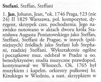Jan Stefani, také Steffan, Steffani, Joannis, Johann, Jean (asi 1746 Praha – 24. února 1829 Varšava) byl polský houslista, dirigent a hudební skladatel českého původu.