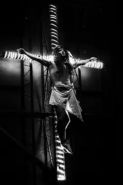 - ↑ SUPER.CZ. Kaskadérský výkon na kříži: Ježíš Jan Tláskal zpívá v RockOpeře Praha několik metrů nad zemí. super.cz. Dostupné online [cit. 2022-11-25].