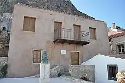 Rostisův dům s pamětní deskou a bustou v Monemvasii