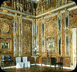 V Kateřinském paláci se od roku 2003 nachází věrná kopie jantarové komnaty.