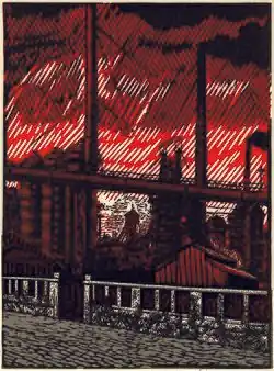 Ze železáren ve Vítkovicích – z cyklu Ostrava, 1940, linoryt - Z Pováží I.. Vavřík a Chlanda, Břeclav 1927.