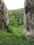 Na protější straně Doliny Prądnika se nachází populární skalní útvar Krakovská brána.