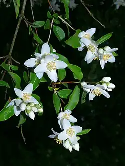 - pustoryl věncový (Philadelphus coronarius) pěstovaný v řadě různých kultivarů;