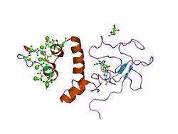 Bovinní protrombinový fragment 1 v komplexu s kalciovým iontem. Popsáno podle[41].