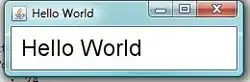 import javafx.ext.swing.*; var myFrame:SwingFrame = new SwingFrame(); var myLabel:Label = new Label(); myLabel.text = "Hello World!"; myFrame.width = 200; myFrame.height = 50; myFrame.visible = true; myFrame.content = myLabel;