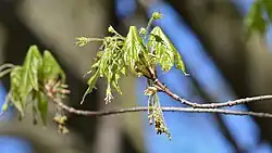 - ↑ a b c LI, Jianhua; STUKEL, Mark; BUSSIES, Parker. Maple phylogeny and biogeography inferred from phylogenomic data. Journal of Systematics and Evolution. 2019, roč. 57, čís. 6, s. 594–606. Dostupné online [cit. 2021-10-30]. ISSN 1759-6831. doi:10.1111/jse.12535. (anglicky)