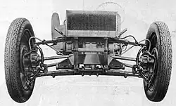 Všechna disková kola s mechanickými bubnovými brzdami byla nezávisle zavěšena a byla opatřena pneumatikami o rozměrech 4, 00–19" (zprvu dle původního DKW) později 4, 50–18".[6] Hmotnost samotného podvozku 400 kg.[8]