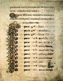 - ↑ a b MAAS, Anthony. The Catholic Encyclopedia. Svazek 6. New York: Robert Appleton Company, 1909. Dostupné online. Kapitola Genealogy (in the Bible). (angličtina)