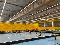 V hale hraje superligový florbalový tým Florbal Chodov.