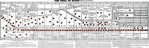 - ↑ a b CARROLL, J. M. Trail of Blood. [s.l.]: Challenge Press, 2014-03-30. Dostupné online. ISBN 9780866452113. (angličtina)