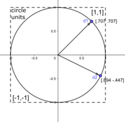 V eukleidovském prostoru je skalární součin dvou jednotkových vektorů roven kosinu úhlu, který svírají, což plyne okamžitě z patřičné definice.