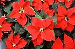 - pryšec (Euphorbia spp.), například pryšec nádherný (Euphorbia pulcherrima) známý jako vánoční hvězda, nebo pryšec zářivý (Euphorbia milii), neboli Kristova koruna.
