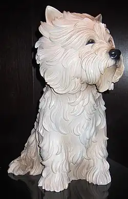 V roce 1992 dostal Koons zakázku vytvořit dílo pro výstavu v Bad Arolsen v Německu. Výsledkem byla 12,4 m vysoká socha Štěně, představující westhighlandského bílého teriéra, vytvořená z květin na ocelové konstrukci. Socha byla roku 1995 rozložena a znovu postavena v Muzeu současného umění v Sydney, doplněná o trvanlivější konstrukci z nerezové oceli a vnitřní zavlažovací systém. O dva roky později ji zakoupila Nadace Solomona R. Guggenheima a Štěně se přesunulo na terasu před Guggenheimovým muzeem v Bilbau.[7] V roce 2000 byla socha zapůjčena na krátkodobou výstavu do Rockefellerova centra v New Yorku. Koonsem vyrobenou přesnou kopii bilbajské sochy vlastní mediální magnát Peter Brant a má ji vystavenou na svém pozemku v Connecticutu.