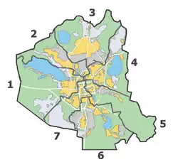 Jekatěrinburg se dělí na 7 rajónů (městských částí):