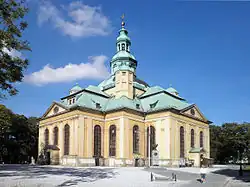 Bývalý cisterciácký klášter postavený mezi lety 1671–1684, který uzavírá lázeňskou zónu na západě, se po rozsáhlé rekonstrukci stal v roce 2013 sídlem Přírodovědeckého muzea (Muzeum Przyrodnicze).[56] Přiléhá k němu katolický kostel svatého Jana Křtitele – barokní, dokončený v roce 1714, se samostatnou zvonicí. Mají ho ve správě piaristé.[57] Druhou církevní památkou Slezských Teplic je evangelický kostel Spasitele z roku 1779.[58]