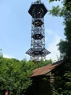 Na jeho vrcholu stojí chátrající železná bývalá vojenská věž, dnes již vyhledávaná jako adrenalinová rozhledna.
