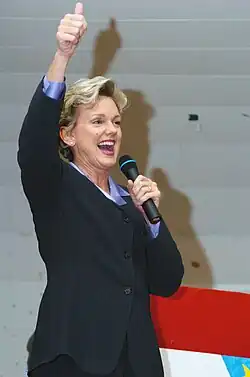 - ↑ Despite presidential losses, women in politics score gains [online]. Cawp.rutgers.edu [cit. 2014-10-05]. Dostupné v archivu pořízeném z originálu dne 12-08-2013.