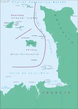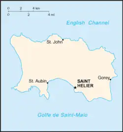 - ↑ Where is Jersey [online]. Jersey Tourism [cit. 2006-10-15]. Dostupné v archivu pořízeném dne 20 August 2006.