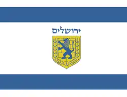 Vlajka Jeruzaléma, hlavního města[pozn. 1] státu Izrael, je založena na vzhledu izraelské vlajky. Tvoří ji dva modré pruhy podél horního i dolního okraje bílého listu (v poměru šířek pruhů 3:5:16:5:3), připomínající židovský modlitební šál talit. Uprostřed bílého pruhu je znak Jeruzaléma, který tvoří štít s Judovým lvem (symbol kmene Juda) na pozadí připomínající Západní zeď. Kolem lva jsou po obou stranách olivové ratolesti. Nad štítem je nápis ירושלים (česky Jerušalajim tj. Jeruzalém.[3] Není jasné, jaký odstín modré je správný i to, zda byla vlajka oficiálně přijata.