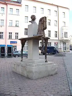 - ↑ a b Jezdecká socha Jaroslava Haška na Prokopově náměstí v Praze | Drobné památky. www.drobnepamatky.cz [online]. [cit. 2024-05-17]. Dostupné online.