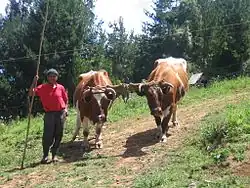 Jho nebo též jařmo je část postroje tažných zvířat, která přenáší tažnou sílu na pluh. Zprvu patrně jen dřevěná tyč, upevněná jednomu zvířeti přes čelo, později různě tvarovaná, která spojuje dvě zvířata do páru. Upevňovalo se na čelo, za rohy nebo před kohoutek. První zmínky o jhu jsou z období okolo roku 4000 př. n. l. Již od 10. století bylo postupně vytlačováno efektivnějším a pro zvířata pohodlnějším chomoutem.