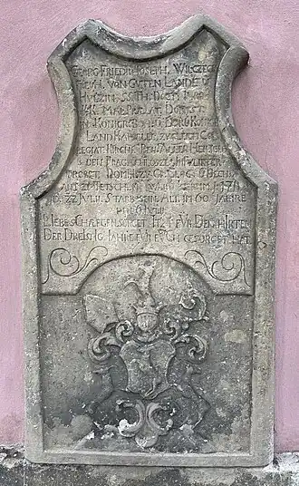 Obrázky, zvuky či videa k tématu Georg Friedrich Joseph Wilczeck na Wikimedia Commons - 1769 WILCZEK Georg Friedrich Joseph, baron from Hlučín, Silesian nobleman, dean in Decin (latinsky)