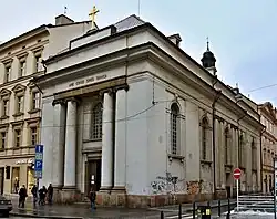 - Kostel sv. Kříže v Praze Na příkopech, připojený k nově adaptované barokní budově kláštera piaristů – projekt z roku 1816, realizace J. Hausknecht 1819–1823