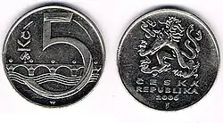 - 1993 oběžná mince 5 Kč, ražená niklová ocel
