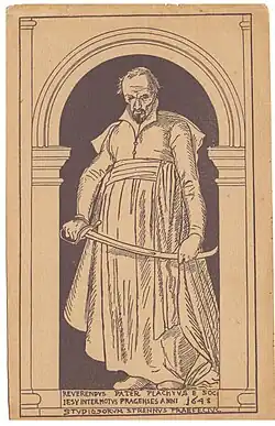 I když nebyl přímo velitelem studentské legie, která zabránila švédské armádě přejít přes Karlův most a dobýt pravobřežní části Prahy, patřil k jejím nejvýraznějším osobnostem. Pro jeho vysokou postavu mu říkali „dlouhý páter“ a jeho neohroženost prý vzbuzovala obdiv i mezi nepřáteli. Tradovala se historka, že se ho Švédové báli a považovali ho za čaroděje - že prý dává studentům jíst nějaké lístky s říkáním, které je chrání před jejich kulemi.[2] Plachého železné rukavice a přílbu potom dlouho uchovávali v Klementinu a studenti je nosili v průvodu při každoročních procesích k Mariánskému sloupu na Staroměstském náměstí.[1]