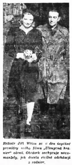 ![]() Režisér Jiří Weiss s L.H. Strunou při natáčení filmu „Uloupená hranice“ | |