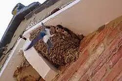 - ↑ a b c d e SCHWARZENBACH, Y.; SCHEEL, B. et al. Mehlschwalben fördern – Ein Merkblatt von BirdLife Schweiz [online]. BirdLife Schweiz [cit. 2023-06-17]. Dostupné online. (německy)
