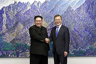 - ↑ Kim Čong-un a Mun Če-in vystoupili na „posvátnou“ horu Pektu. ČT24 [online]. 20. 9. 2018 [cit. 2020-11-11]. Dostupné online.