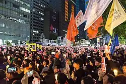 - ↑ BROLÍK, Tomáš. Skandál s vědmou dostal jihokorejskou exprezidentku na 24 let do vězení. Týdeník Respekt [online]. [cit. 2020-11-11]. Dostupné online.
